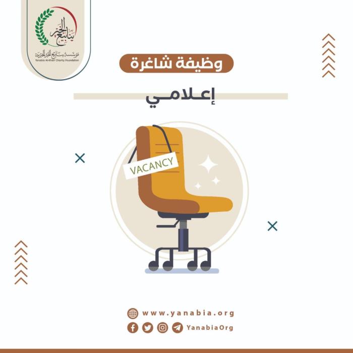 تعلن مؤسسة ينابيع الخير الخيرية عن رغبتها في توظيف إعلامي ، وذلك وفق المؤهلات والشروط التالية: